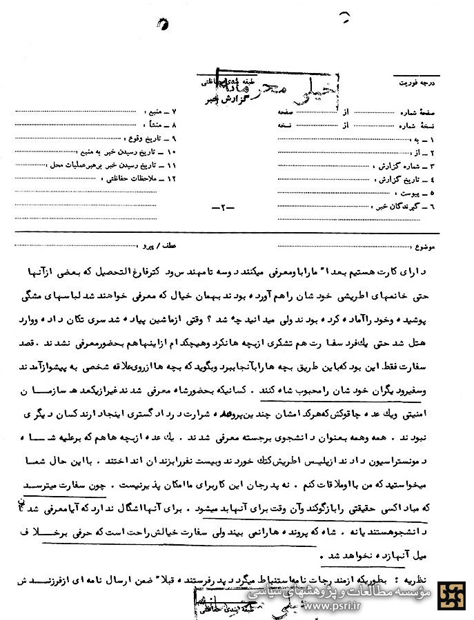 ۱- این رفتار سفارت را باید به حساب روحیه شخص شاه گذاشت، چرا که اصولاً روحیه محمدرضا پهلوی بهگونهای بود که تاب شنیدن حقایق را نداشت و سفارت هم به خوبی از این روحیه او آگاه بوده است.