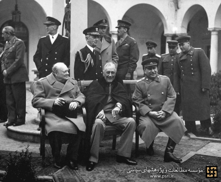 از چپ: استالین ، چرچیل و روزولت در تراس سفارت شوروی