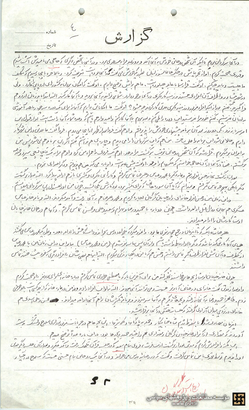در برنامه سه نفری من و محمد و عباس هم محمد مطرح کرد که چون من در تهران با کسی تماس ندارم بهتر است به شهرستان بروم و ظاهراً با توجه به زمینههای قبلی سعید در رضائیه او به رضائیه و بعداً به تبریز رفت و بعد از مدتی برگشت و گفت که در آنجا هم زمینه فعّالیت هست و بنا شد که دو هفتهای یکبار به ما سر بزند (یعنی به خانه ما بیاید). ولی من از برنامه تبریز و از افرادی که با او تماس میگرفتند و کار میکردند هیچگونه اطلاعی ندارم، فقط گاه و بیگاه که میآمد از نشریاتی که تکثیر کرده و یا تفسیرهایی که دوباره در آنجا تکثیر شده صحبت میکرد.