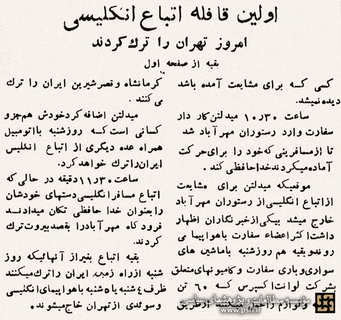 خروج اتباع دولت انگلیس از ایران به دنبال قطع روابط سیاسی ایران و انگلستان در مهرماه ۱۳۳۱