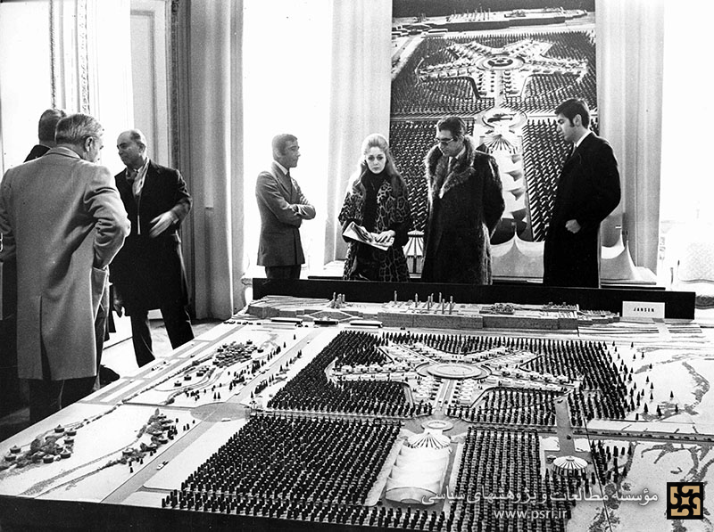 بازدید غلامرضا پهلوی و منیژه جهانبانی از ماکت محل برگزاری جشنهای 2500 ساله