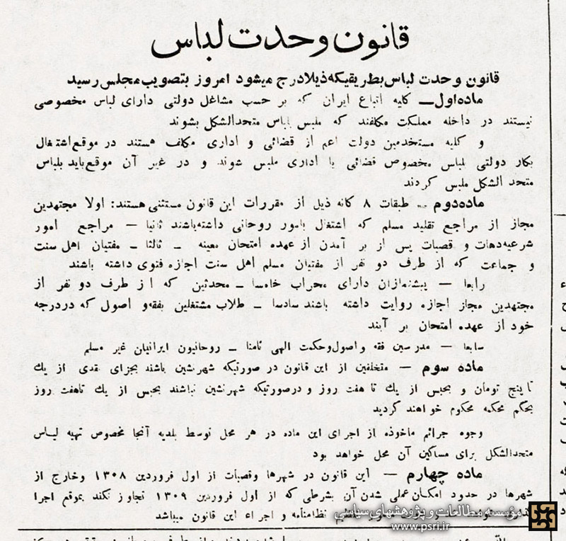 (تصویب قانون لباس متحدالشکل در مجلس شورای ملی)