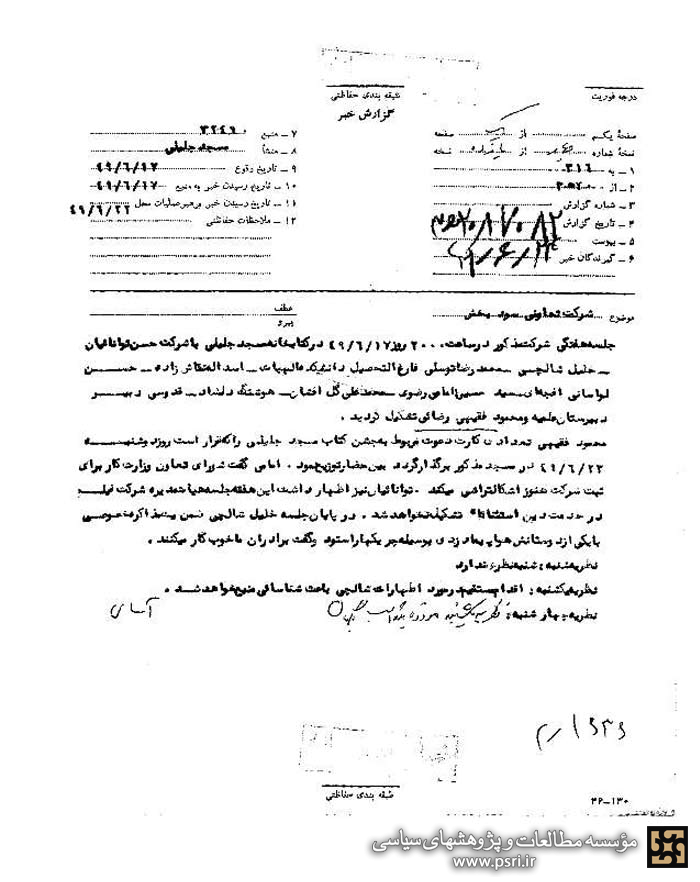 از نگاه ساواک، «شرکت فیلم در خدمت دین» صرفاً یک مؤسسه فرهنگی نبود، بلکه یک مرکز بالقوه برای فعالیتهای سیاسی و مذهبی مخالف حکومت بود. حضور افرادی با سوابق سیاسی و ارتباط اعضا با نهادهایی چون حسینیه ارشاد و مسجد الجواد و نصب عکس آیتالله خمینی در جلسات، حساسیت ساواک را برانگیخته بود. ساواک تلاش به رصد دقیق جلسات از طریق منابع نفوذی خود، شناسایی اعضا و پیگیری فعالیتهای آنها داشت اما تنها تعداد گزارش محدودی از جزئیات این جلسات دارد. (جهت مطالعه درباره این شرکت اینجا را بخوانید.)
