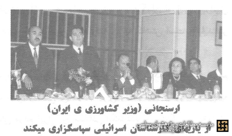 این تصویر احتمالاً مربوط به سفر موشه دایان در سال ۱۳۴۱ به ایران، و در زمانی که وی وزیر کشاورزی کابینه رژیم صهیونیستی بود، میباشد. این سفر در پی دعوت حسن ارسنجانی، وزیر وقت کشاورزی ایران، از وی انجام گرفت. ارسنجانی چندین بار به دعوت عزری به فلسطین اشغالی سفر و با مقامات بلندپایه اسرائیلی ملاقات و دیدار کرده بود. میزبانی مقامات اسرائیلی از حسن ارسنجانی در هتل کینگ دیوید و دیدارها و نشستهای مکرر او با گلدا مایر، لوی اشکول، پینحاس سیبر، موشه دایان و عزرا دانین و... او را به دوست نزدیک اسرائیلیها تبدیل کرده بود. از سوی دیگر، ارسنجانی نیز مکرر از مقامات اسرائیلی در ایران پذیرایی کرده بود که دعوت از موشه دایان وزیر کشاورزی وقت اسرائیل برای سفر به تهران و میزبانی گرم ارسنجانی از او تنها یک نمونه از آن است
