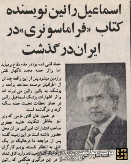 اینچنین بود که مطبوعات نوشتند: «اسماعیل رائین نویسنده کتاب «فراماسونری در ایران» در مقابل شرکت انتشاراتی امیرکبیر ناشر این اثر، در زیر مشت و لگد دهها نفر معترض جان سپرد.»
