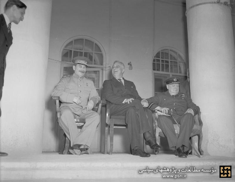 از چپ: استالین ، چرچیل و روزولت در تراس سفارت شوروی