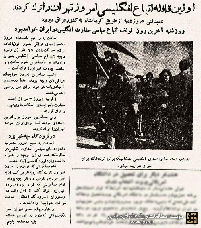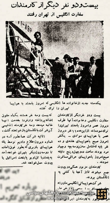 خروج اتباع دولت انگلیس از ایران به دنبال قطع روابط سیاسی ایران و انگلستان در مهرماه ۱۳۳۱