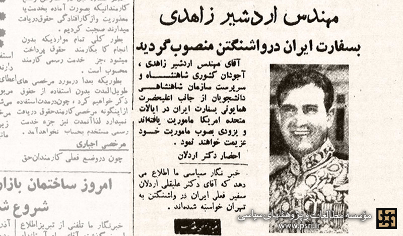 [1] اردشیر زاهدی دوبار به عنوان سفیر ایران در واشنگتن انتخاب شد: بار اول در سال ۱۳۳۸ و بار دوم در سال ۱۳۵۱.