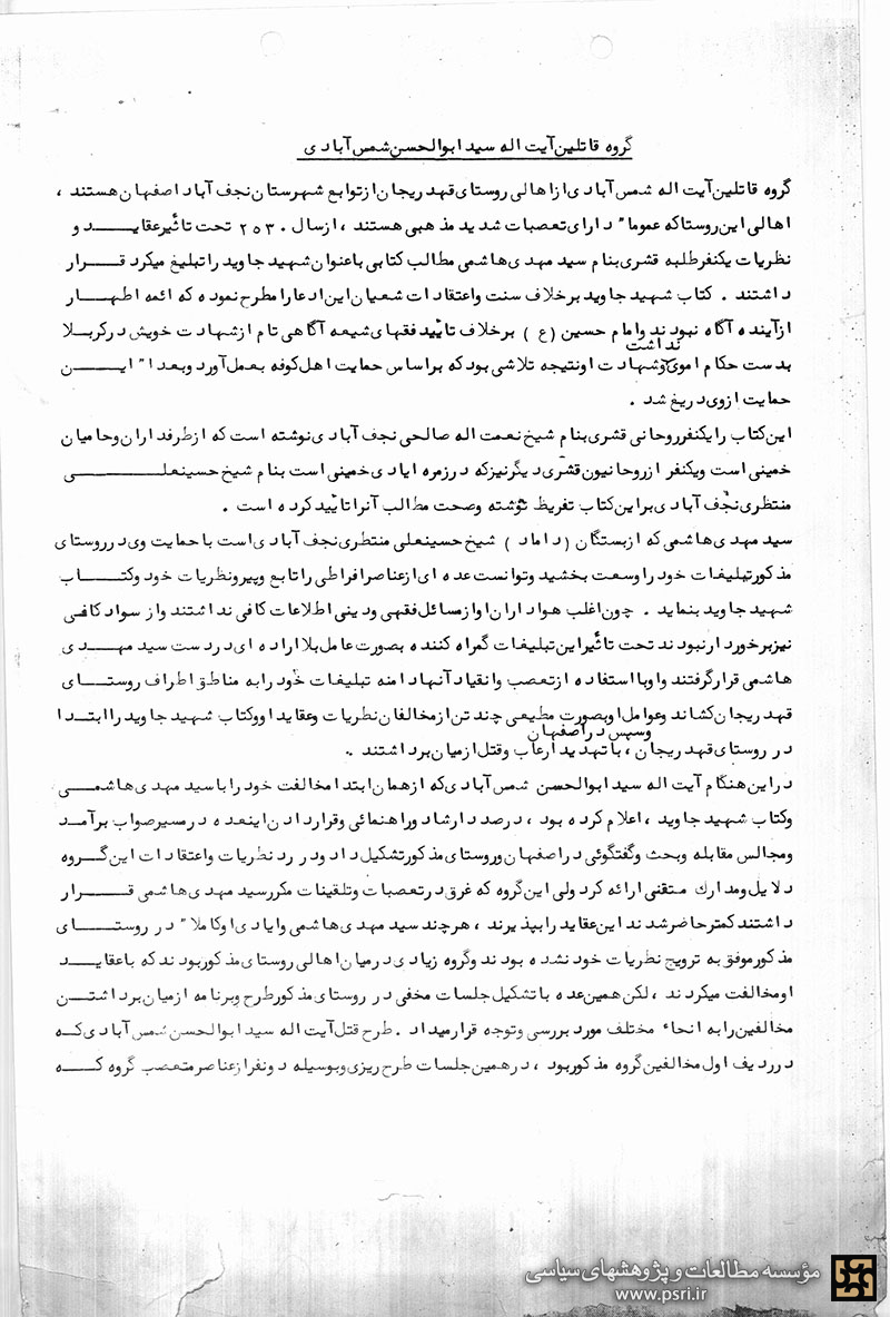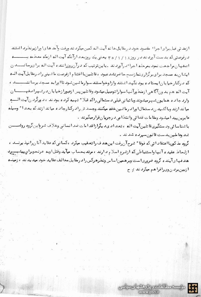 موسسه مطالعات و پژوهشهای سیاسی برای نخستین بار ، متن گزارش تهیه شده ساواک را به شرح زیر منتشر میکند