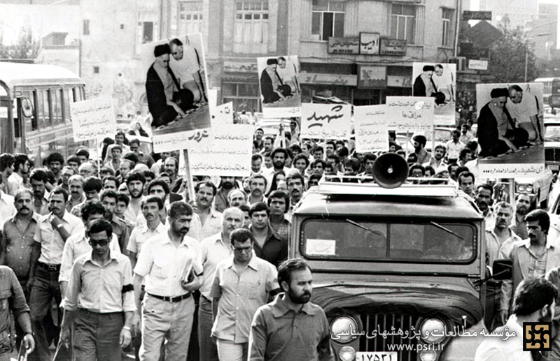 راهپیمایی کارکنان مؤسسه کیهان در پی ترور شهید حاج مهدی عراقی و حسین مهدیان مدیران آن مؤسسه