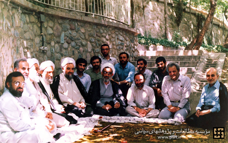 حسین مهدیان در کنار مبارزانی همچون حضرات آیات واعظ طبسی، انواری، مهدوی کنی و ... در حیاط دانشگاه امام صادق علیه السلام