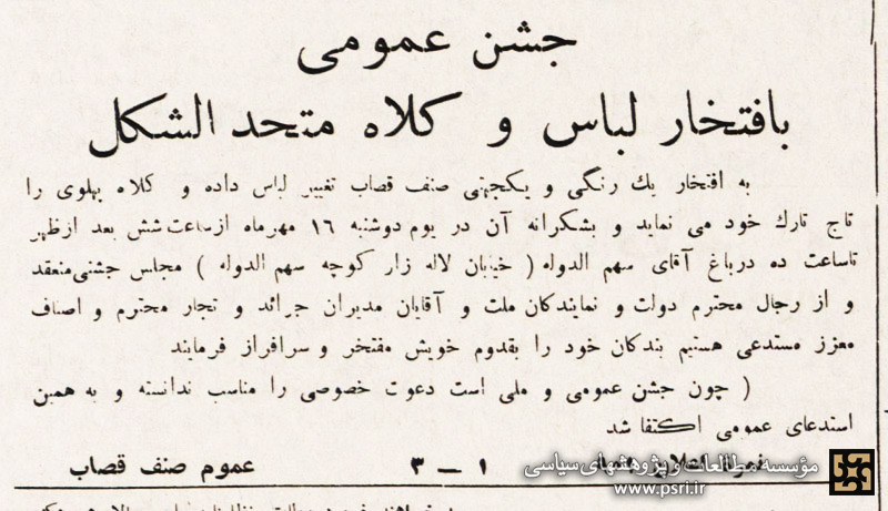 (تصویب قانون لباس متحدالشکل در مجلس شورای ملی)