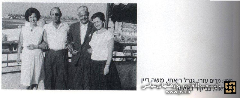 این تصویر احتمالاً مربوط به سفر موشه دایان در سال ۱۳۴۱ به ایران، و در زمانی که وی وزیر کشاورزی کابینه رژیم صهیونیستی بود، میباشد. این سفر در پی دعوت حسن ارسنجانی، وزیر وقت کشاورزی ایران، از وی انجام گرفت. ارسنجانی چندین بار به دعوت عزری به فلسطین اشغالی سفر و با مقامات بلندپایه اسرائیلی ملاقات و دیدار کرده بود. میزبانی مقامات اسرائیلی از حسن ارسنجانی در هتل کینگ دیوید و دیدارها و نشستهای مکرر او با گلدا مایر، لوی اشکول، پینحاس سیبر، موشه دایان و عزرا دانین و... او را به دوست نزدیک اسرائیلیها تبدیل کرده بود. از سوی دیگر، ارسنجانی نیز مکرر از مقامات اسرائیلی در ایران پذیرایی کرده بود که دعوت از موشه دایان وزیر کشاورزی وقت اسرائیل برای سفر به تهران و میزبانی گرم ارسنجانی از او تنها یک نمونه از آن است