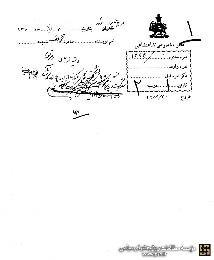 تاریخ سند: ۲۳ آبانماه ۱۳۱۰